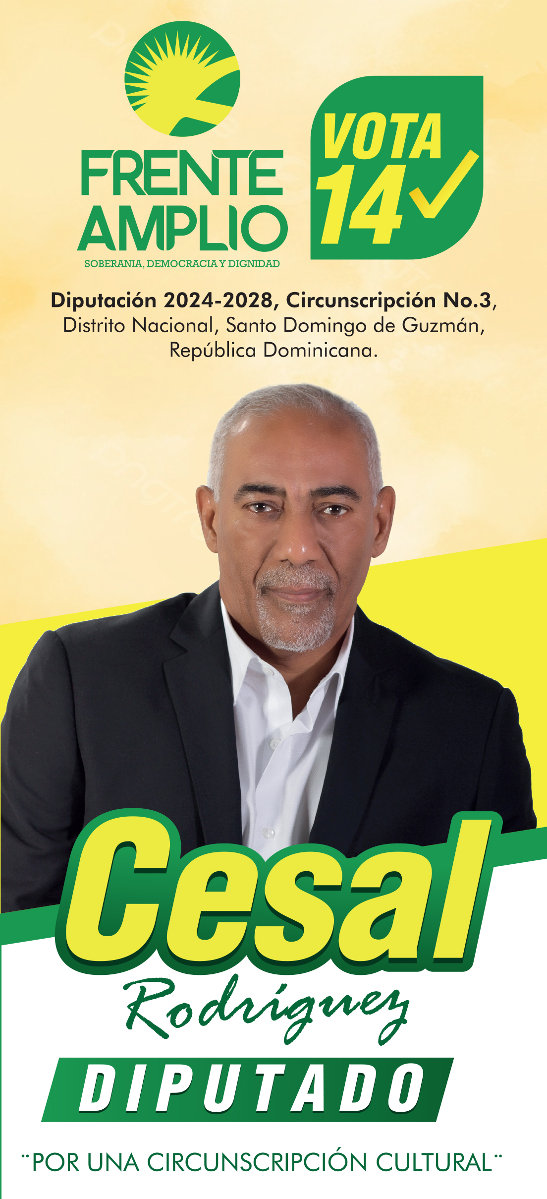 NacionalesCesal Rodríguez aspira a diputado del FA por la circunscripción 3 del Distrito Nacional por Redacción abril 16, 2024 Escrito por Redacción abril 16, 2024 0 comentario 0 FacebookTwitterEmailRedacción previous post Integrantes del Frente Agropecuario del PRM se congregan en Villa Altagracia next post Cuba: Tensiones demográficas You may also like INCAUTAN CARGAMENTO DE 1.6 TONELADAS DE PRESUNTA COCAÍNA abril 18, 2026 Un grupo de 34 haitianos indocumentados fue interceptado... abril 18, 2026 Fallecen dos personas tras colapso de pared en... abril 17, 2026 Obras Públicas anuncia cierre temporal del Puente Flotante... abril 17, 2026 Presidente Abinader visitará este sábado las zonas afectadas... abril 17, 2026 Comandante del Comando Conjunto Unificado supervisa desde el... abril 16, 2026 Certifican a 512 estudiantes como promotores de prevención... abril 16, 2026 Tribunal se reserva el fallo del caso Adán... abril 16, 2026 Inafocam e Ideice fortalecen la investigación y la... abril 16, 2026 Gobierno reorganiza el Consejo Consultivo y fortalece la... abril 16, 2026Deje un comentario CancelarLo siento, debes estar conectado para publicar un comentario.