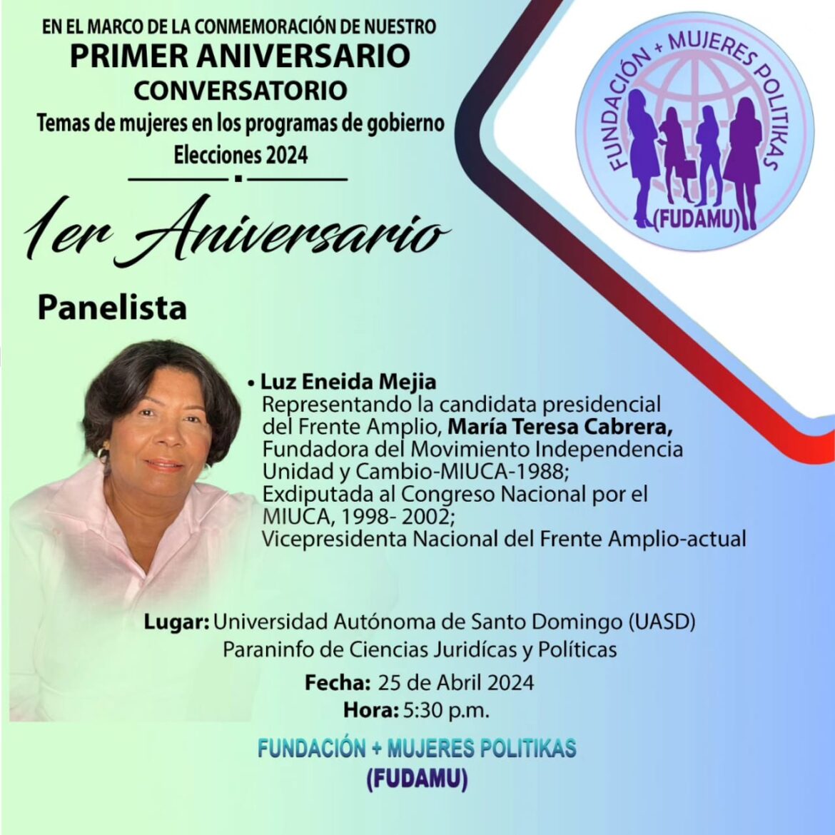 NacionalesDebatirán cuestión femenina en programas de gobierno de partidos y candidatos por Redacción abril 24, 2024 Escrito por Redacción abril 24, 2024 Luz Eneida Mejía, vicepresidenta del Frente Amplio, representará a la candidata presidencial María Teresa Cabrera, en un conversatorio en la UASD sobre feminismo. 0 comentario 0 FacebookTwitterEmailRedacción previous post Decenas asisten a conferencia de María Teresa Cabrera sobre sus propuestas next post Banco Central informa que los flujos de remesas alcanzaron los US$2,635.6 millones en el primer trimestre de 2024 You may also like Gobierno anuncia construcción de dos cementerios y un... abril 19, 2026 Policía Nacional apresa a ocho motoconchistas por muerte... abril 19, 2026 RD será sede de la Asamblea General de... abril 19, 2026 INCAUTAN CARGAMENTO DE 1.6 TONELADAS DE PRESUNTA COCAÍNA abril 18, 2026 Un grupo de 34 haitianos indocumentados fue interceptado... abril 18, 2026 Fallecen dos personas tras colapso de pared en... abril 17, 2026 Obras Públicas anuncia cierre temporal del Puente Flotante... abril 17, 2026 Presidente Abinader visitará este sábado las zonas afectadas... abril 17, 2026 Comandante del Comando Conjunto Unificado supervisa desde el... abril 16, 2026 Certifican a 512 estudiantes como promotores de prevención... abril 16, 2026Deje un comentario CancelarLo siento, debes estar conectado para publicar un comentario.
