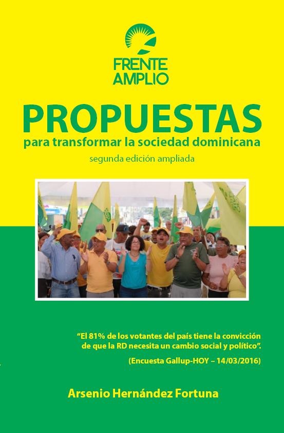 Portada de la obra PROPUESTAS para transformar la sociedad dominicana, de la autoría de Arsenio Hernández Fortuna, vicepresidente del Frente Amplio; un aporte en el presente debate electoral. Está disponible en https://www.amazon.com/-/es/dp/9945188941/