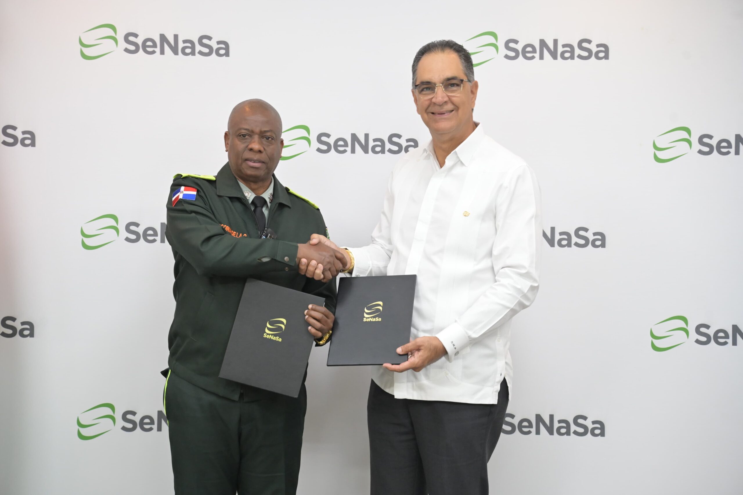 El director de la Dirección General de Seguridad de Tránsito y Transporte Terrestre (DIGESETT), general Francisco Osoria De La Cruz, P.N., y el director Ejecutivo del Seguro Nacional de Salud (SeNaSa), doctor Santiago Marcelo Hazim Albainy, firmaron un acuerdo de colaboración, con el objetivo de aunar esfuerzos en la prevención de accidentes de tránsito.