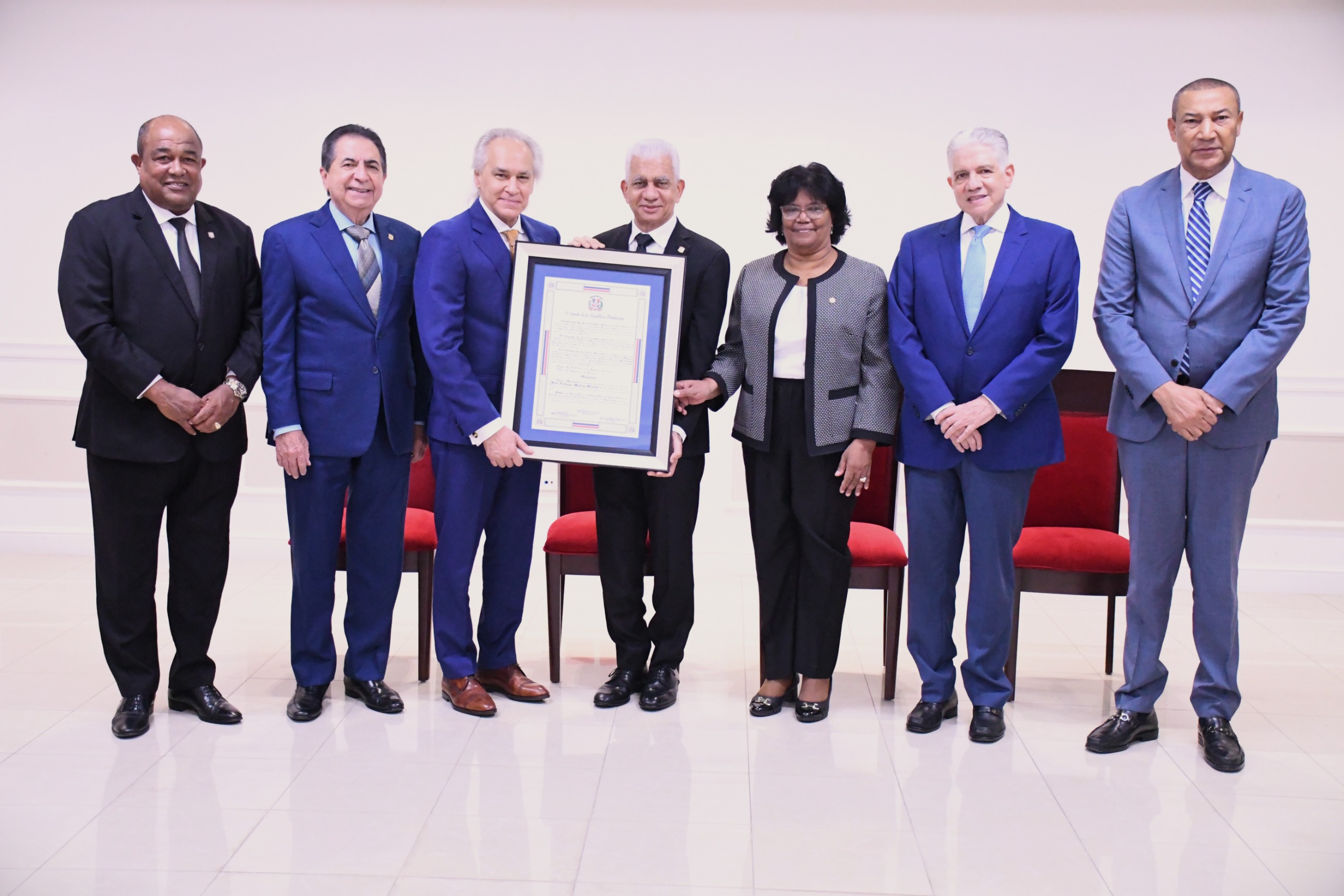SANTO DOMINGO.- El presidente del Senado, Ricardo de los Santos encabezó la entrega de un pergamino de reconocimiento al director de la Orquesta Sinfónica Nacional, José Antonio Molina por sus aportes a la música, el arte y la cultura dominicana.