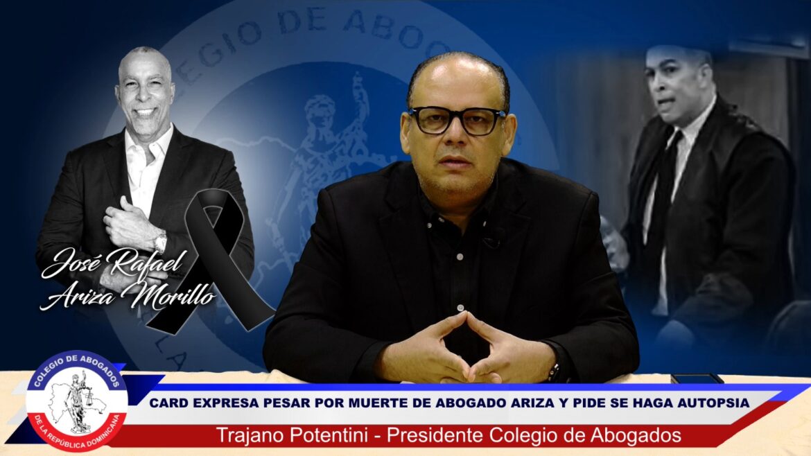 Santo Domingo, RD.– El Colegio de Abogados de la República Dominicana (CARD), encabezado por su presidente, Trajano Vidal Potentini, ha expresado su más profundo pesar ante el fallecimiento del destacado abogado José Rafael Ariza Morillo. La institución ha extendido sus condolencias a los familiares, amigos y colegas del profesional del derecho, resaltando su trayectoria y aportes al sector jurídico de la nación.