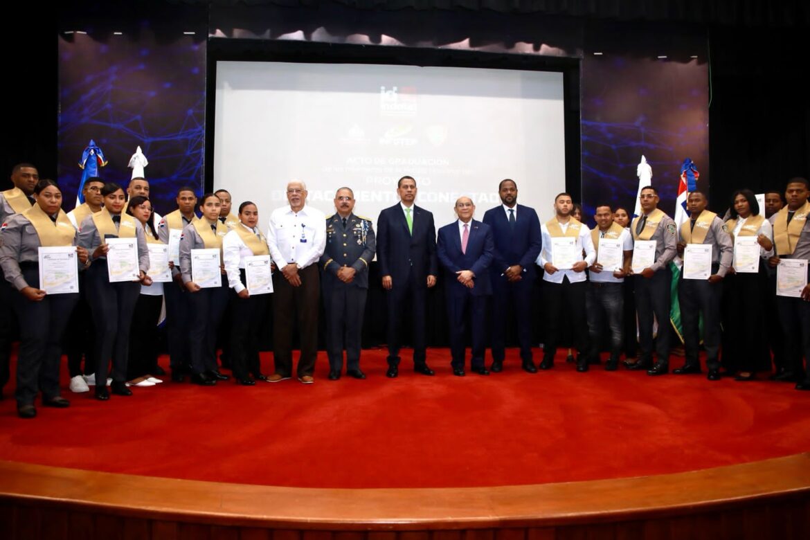 Santo Domingo.-Como parte del proyecto "Destacamentos Conectados", el Instituto Dominicano de las Telecomunicaciones (INDOTEL), en colaboración con el Instituto Nacional de Formación Técnico Profesional (Infotep) y el Ministerio de Interior y Policía (MIC), encabezó la primera fase de la graduación de 147 agentes de la Policía Nacional, quienes fueron formados en el manejo de herramientas tecnológicas para ofrecer un servicio más eficiente en los destacamentos del país.
