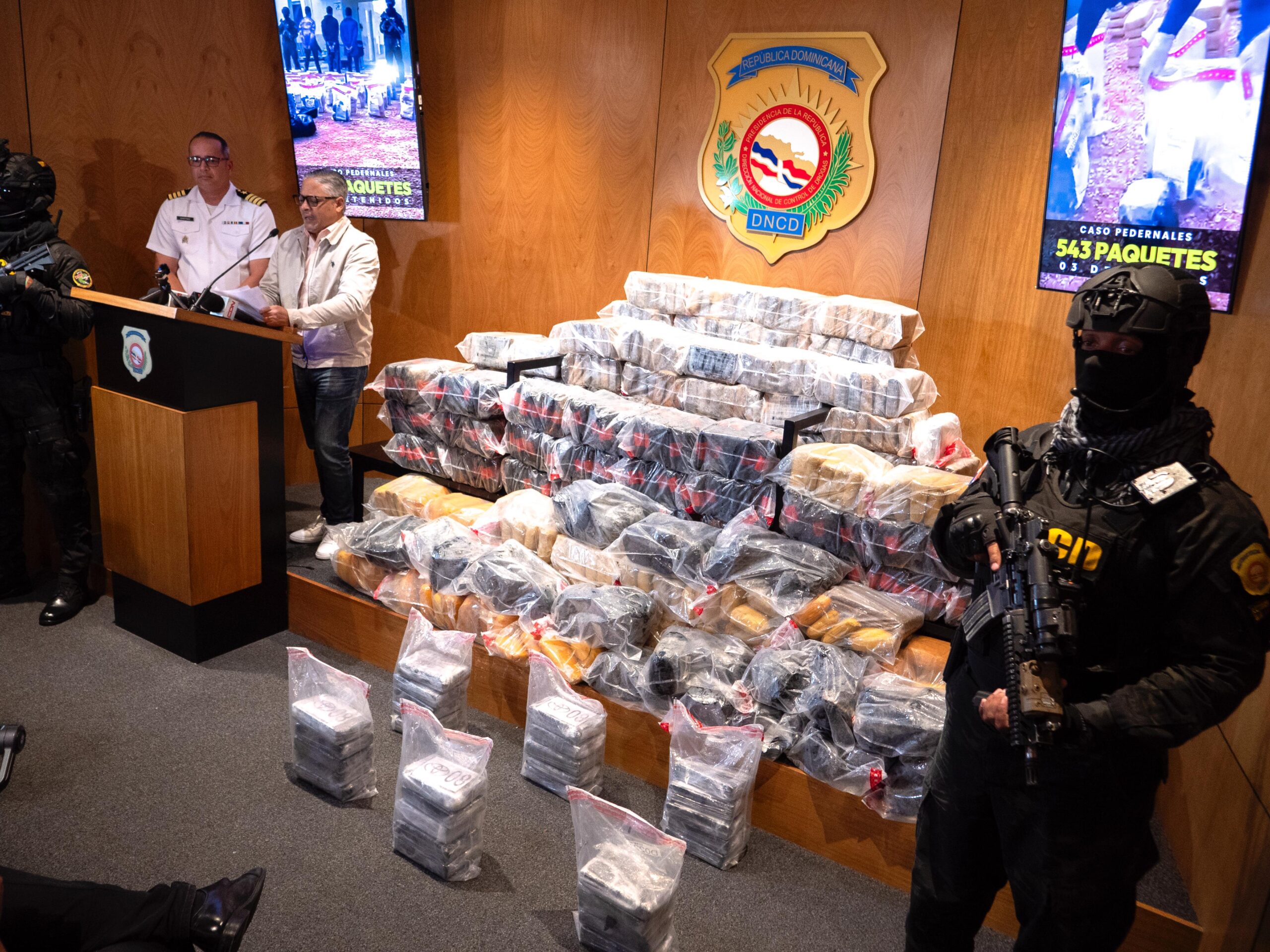 Santo Domingo.- En lo que representa otro golpe importante a las redes de narcotráfico internacional, agentes de la Dirección Nacional de Control de Drogas (DNCD), efectivos de la Armada de República Dominicana (ARD) y la Fuerza Aérea (FARD), coordinados por miembros del Ministerio Público, incautaron un cargamento de 543 paquetes presumiblemente cocaína y marihuana, en una nueva operación de interdicción conjunta, desarrollada frente a las costas de la provincia de Pedernales.