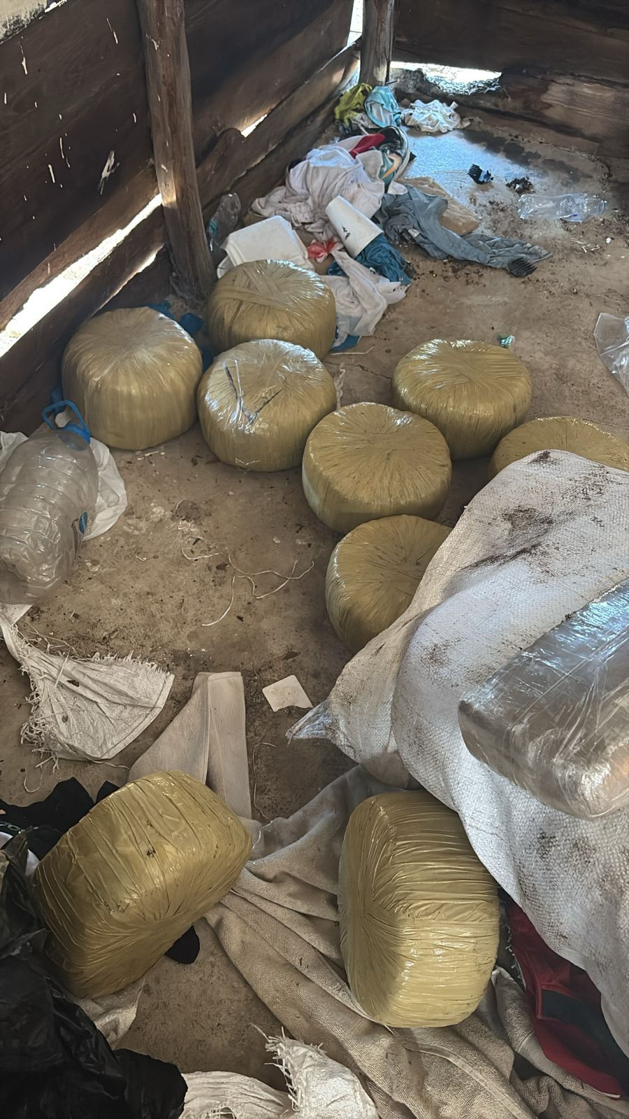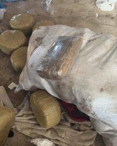 Al ingresar a la casa, se procedió a realizar el protocolo de inspección, localizando en su interior, un total de 24 sacos de color blanco, con 154 paquetes de un vegetal que se presume es marihuana, con un peso aproximado a las 1,303 libras.