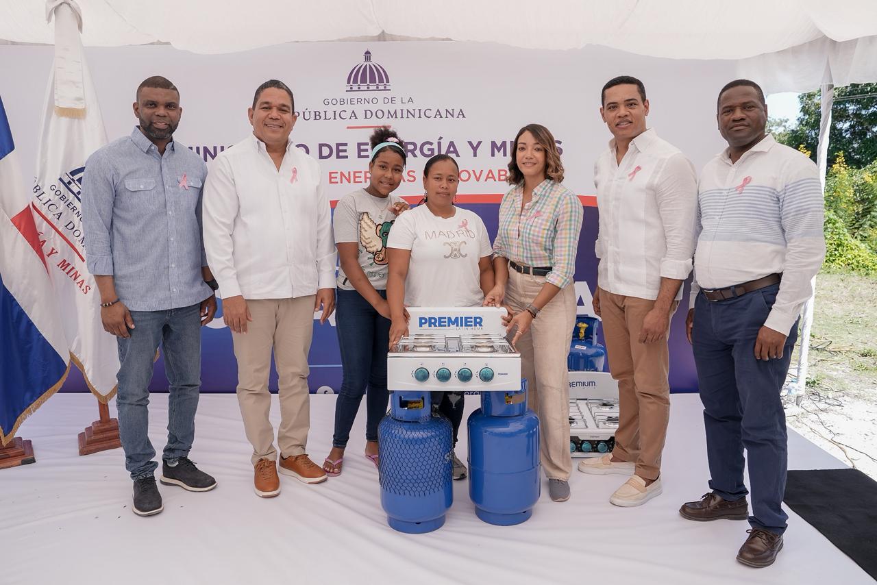 *BARAHONA*.– Con el propósito de seguir eliminando el uso de leña y carbón por gas licuado de petróleo (GLP) en cocinas de hogares vulnerables de comunidades rurales de todo el país, el Ministerio de Energía y Minas entregó 100 kits de cocinas a igual número de familias en sectores de la sección Santa Elena, en la provincia Barahona, como parte del Proyecto Cocinas Limpias.