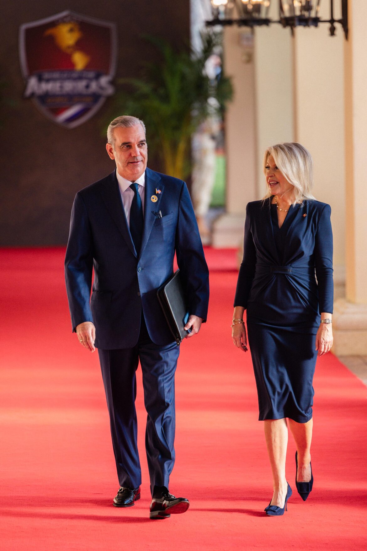 El mandatario dominicano llegó a las 8:07 de la mañana (hora de Miami) al centro de convenciones del Trump National Doral Miami, donde fue recibido por la encargada de protocolo de la Casa Blanca, Mónica Crowley, junto a otros funcionarios norteamericanos.
