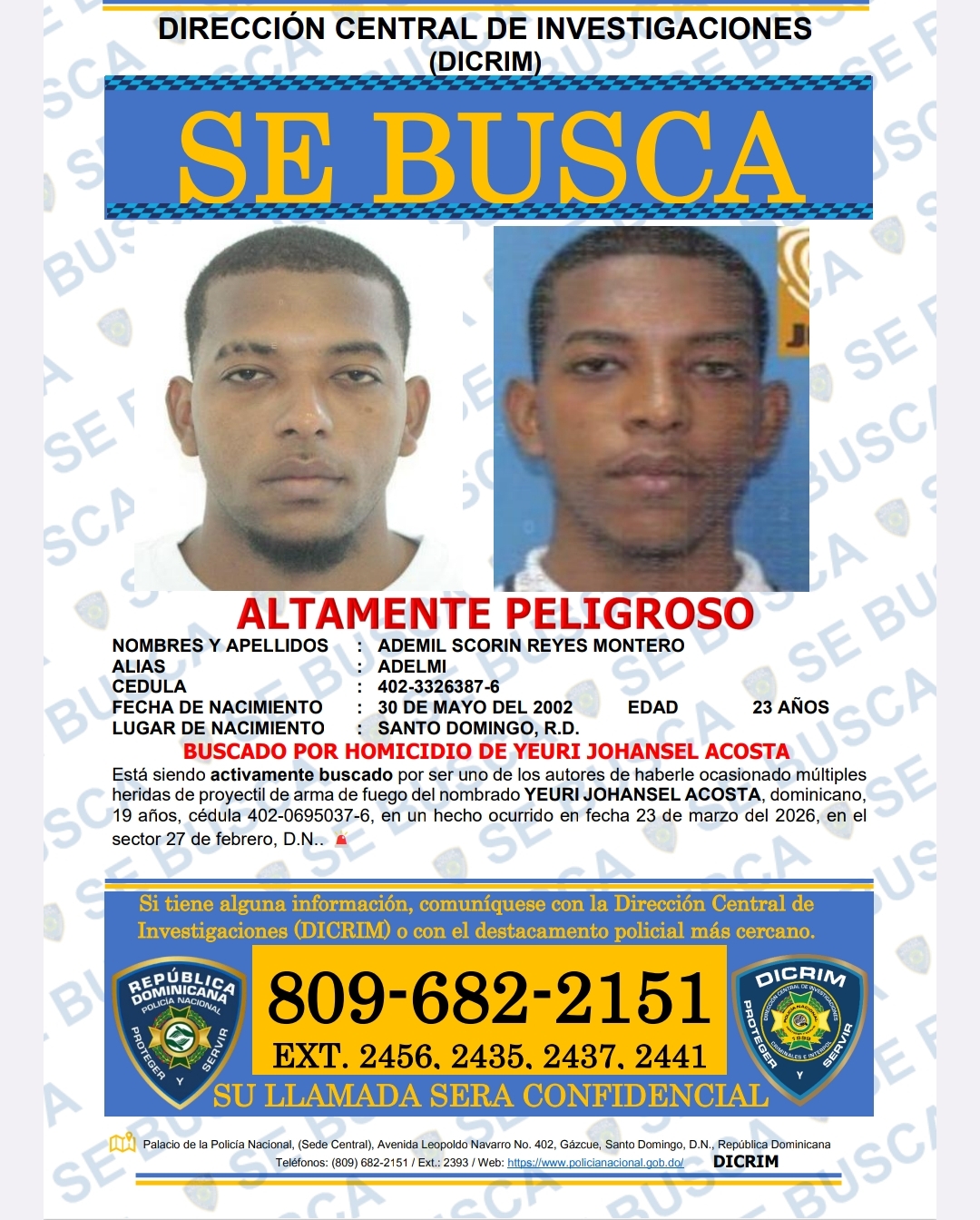 Los prófugos fueron identificados como Leandro Ovalles Solano, de 28 años; Ademil Reyes Montero, de 23; y un individuo conocido únicamente como “ (Li) y/o Compañero”, quienes son activamente buscados por su vinculación al hecho.