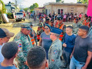 Durante la jornada, el alto oficial estuvo acompañado por la señora Claritza Rochtte Peralta de Senior, gobernadora de la provincia Puerto Plata, con quien evaluó el desarrollo de las labores ejecutadas por el personal militar y los organismos castrenses desplegados en apoyo a la población.