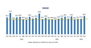 El resultado registrado en marzo representa un aumento de 8.8 puntos respecto a febrero, consolida la trayectoria de crecimiento que registran los primeros tres meses del año y revierte la contracción registrada al cierre del 2025.