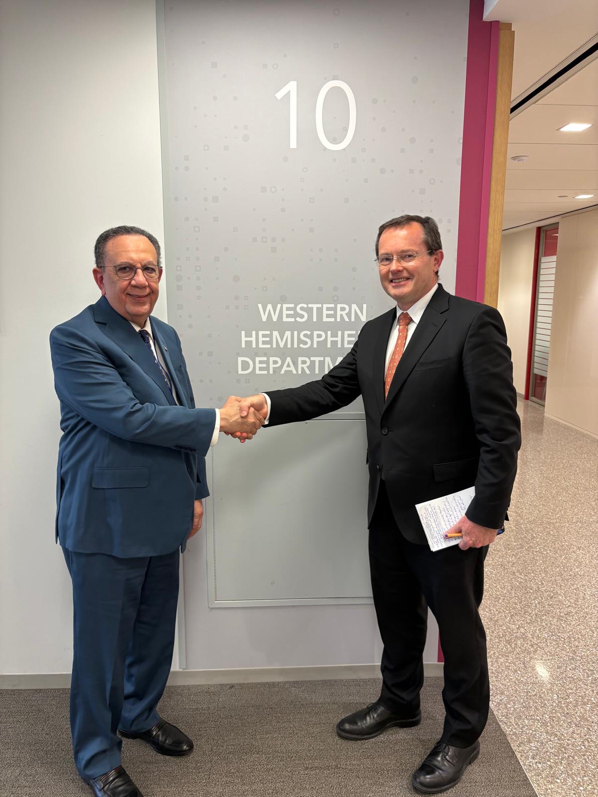 Durante su participación, Valdez Albizu sostuvo una importante reunión con el nuevo director del Departamento del Hemisferio Occidental del FMI, Nigel Chalk, y su directora adjunta, Dora Iakova, donde sostuvieron intercambios e impresiones sobre el contexto macroeconómico de la República Dominicana y las perspectivas de crecimiento e inflación en un entorno internacional de incertidumbre. Asimismo, el funcionario Chalk manifestó el interés del organismo en continuar acompañando al país a través de asistencia técnica, así como en analizar los efectos regionales de las dinámicas globales que están configurando el escenario actual, en un contexto caracterizado por mayores tensiones geopolíticas.